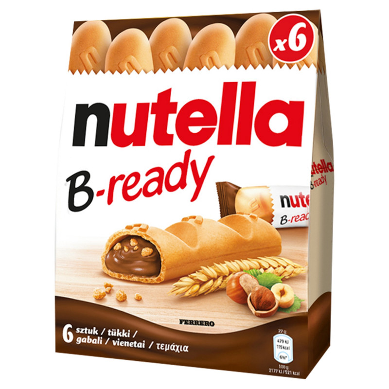 Nutella B-ready zawsze pod ręką! Chrupiący na zewnątrz, aksamitnie kremowy w środku, a do tego w praktycznym opakowaniu, które pozwala cieszyć się smakiem kremu NUTELLA® niezależnie od okoliczności.