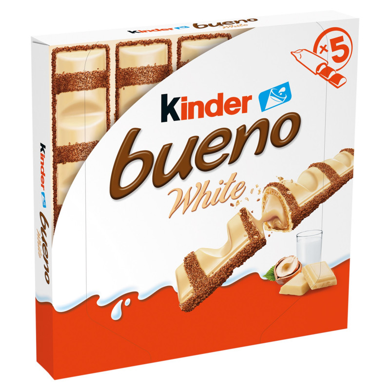 KINDER Bueno White to pyszny batonik z lekkim orzechowym nadzieniem w kruchym