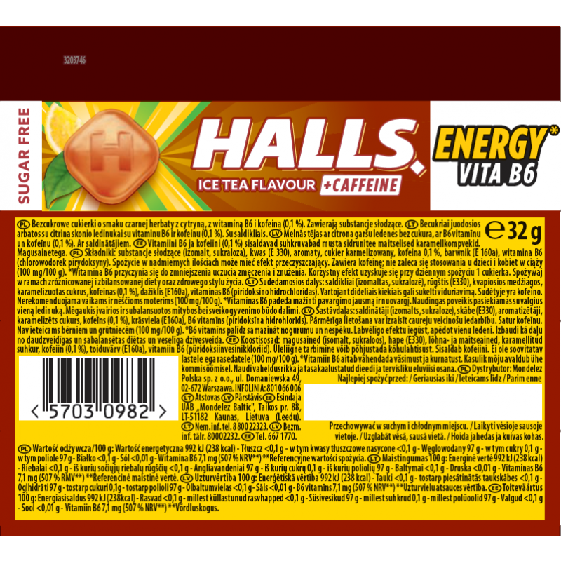 Bezcukrowe cukierki o smaku czarnej herbaty z cytryną, z witaminą B6 i kofeiną.