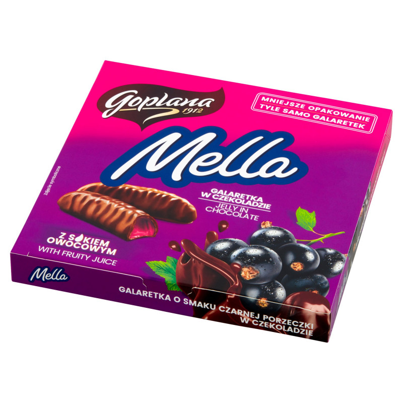 Galaretka o smaku czarnej porzeczki w czekoladzie.