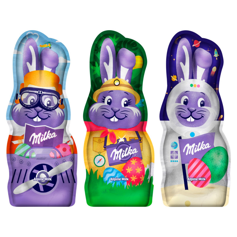 Zajączek Milka 90g w tematycznym opakowaniu wykonany z mlecznej czekolady z mleka alpejskiego. Jest to idealny upominek do koszyczka, słodki dodatek do świątecznego stołu lub po prostu pyszna czekoladowa przyjemność. Od ponad 100 lat inspirujemy chwile prawdziwej więzi między rodzinami, przyjaciółmi i nieznajomymi! Dlatego wszystkie produkty Milka zachęcają do wspólnego cieszenia i dzielenia się nimi.