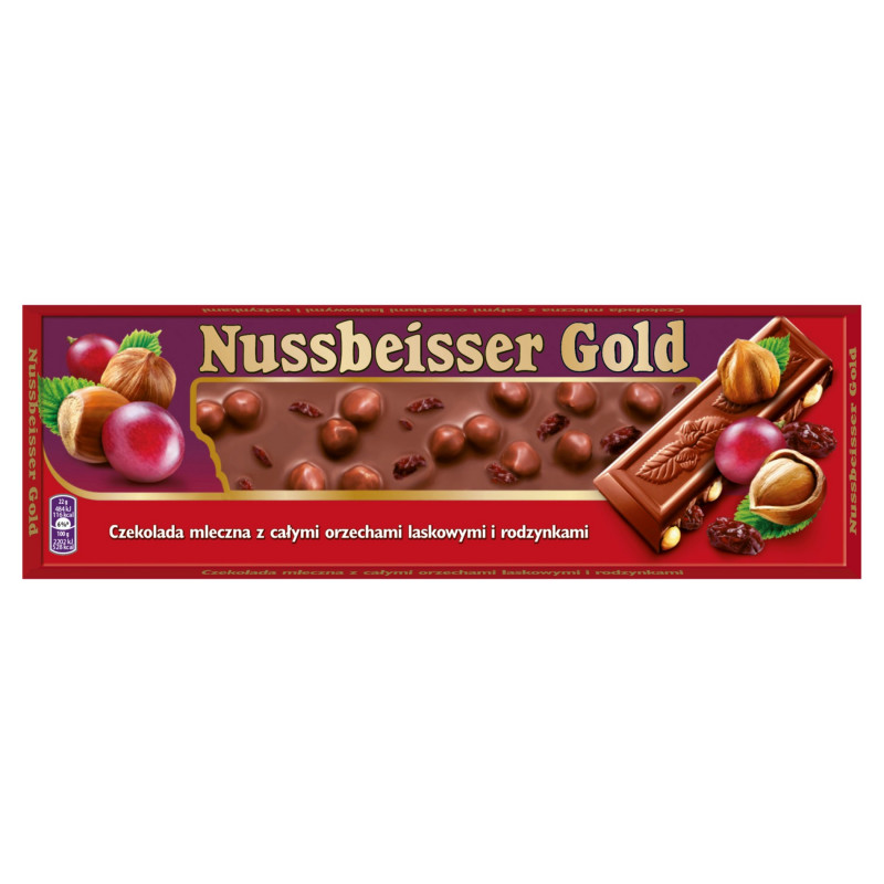 Czekolada mleczna z całymi orzechami laskowymi i rodzynkami w dużym opakowaniu - idealna do dzielenia się. Każdy kawałek czekolady Nussbeisser wypełniają po brzegi całe orzechy. Nie czekaj, przełam tabliczkę po swojemu i daj się porwać chrupiącym doznaniom. Nussbeisser - czekolada z okienkiem. Okienko na porywający smak. Otwórz sie na wyjatkowe orzechowo-czekoladowe połączenie. Chwile z czekoladą Nussbeisser to pełnia smaku w każdym kawałku.