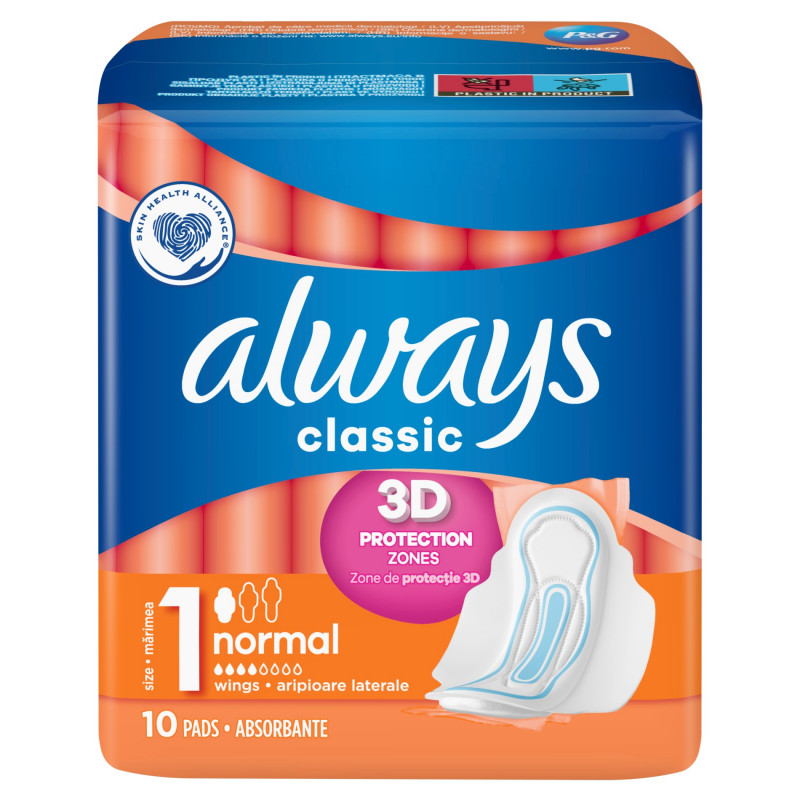 Podpaski ze skrzydełkami Always Classic Normal mają trzy strefy działania, które zapewniają ochronę i uczucie czystości przez cały dzień.