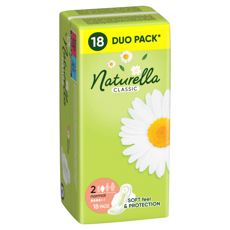 Podpaski Naturella Classic mają delikatny aromat stworzony na bazie rumianku, aby zapewnić uczucie świeżości