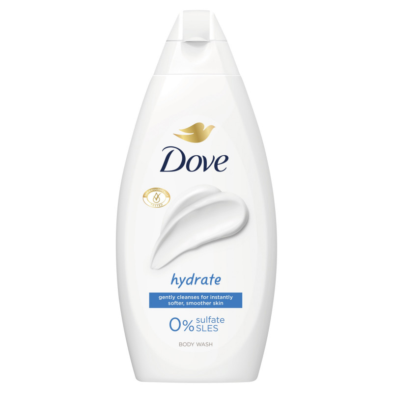 - Żel pod prysznic Dove Hydrate został przebadany dermatologicznie, nie zawiera siarczanów, a jego formuła jest w 92% biodegradowalna