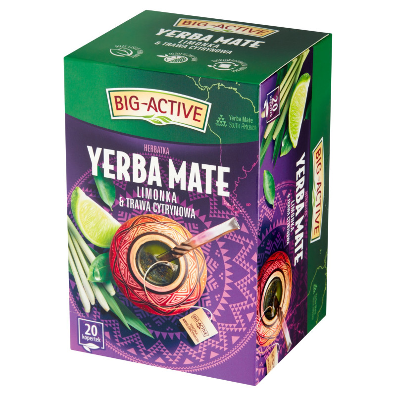 Herbatka z ostrokrzewu paragwajskiego z dodatkiem limonki i trawy cytrynowej, aromatyzowana, ekspresowa.