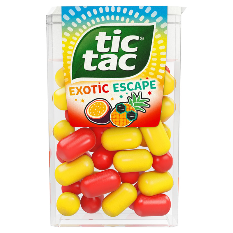 Tic Tac® Exotic Escape to wariant łączący smak ananasa i marakui. Dobrze sprawdza się w chwili przerwy: jest lekki i przyjemnie odświeżający.