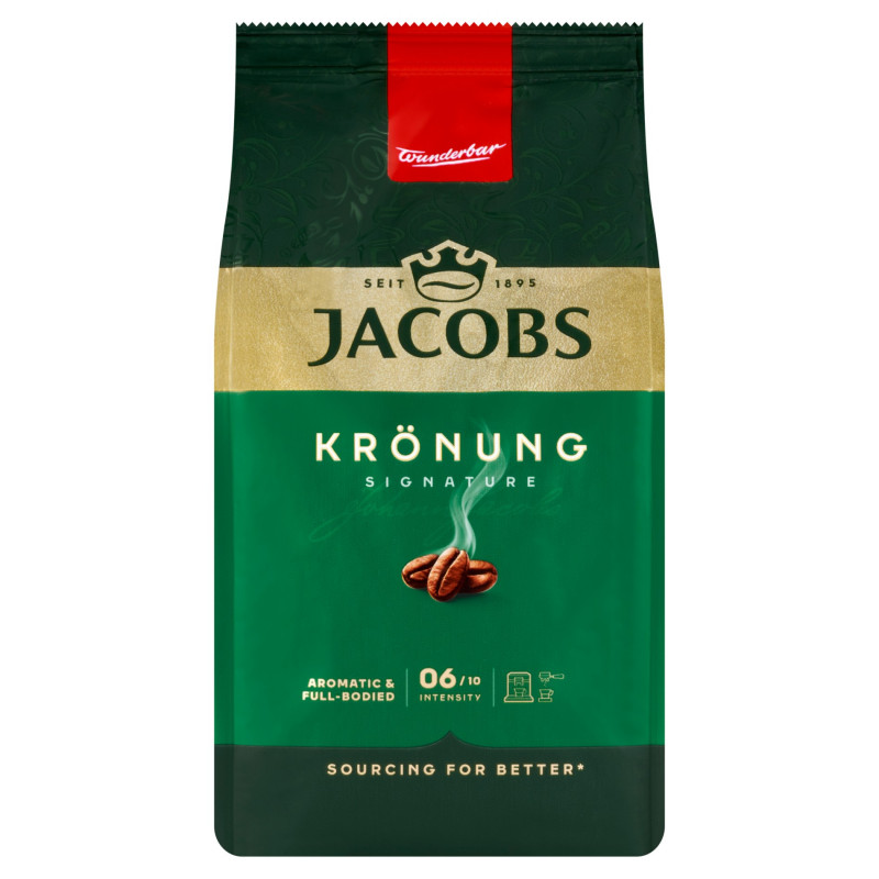 Miłośnicy klasycznego, szlachetnego smaku i aromatu docenią ziarna Jacobs Krönung. Idealna do użycia w automatycznych ekspresach do kawy, jak również parzona metodami tradycyjnymi. Doskonała do parzenia klasycznych kaw czarnych oraz jako baza do kaw z mlekiem. Receptury kaw ziarnistych Jacobs zostały przygotowane na bazie ponad 120 lat doświadczenia naszych ekspertów w prażeniu kawy. Wybierz najlepszą dla siebie.