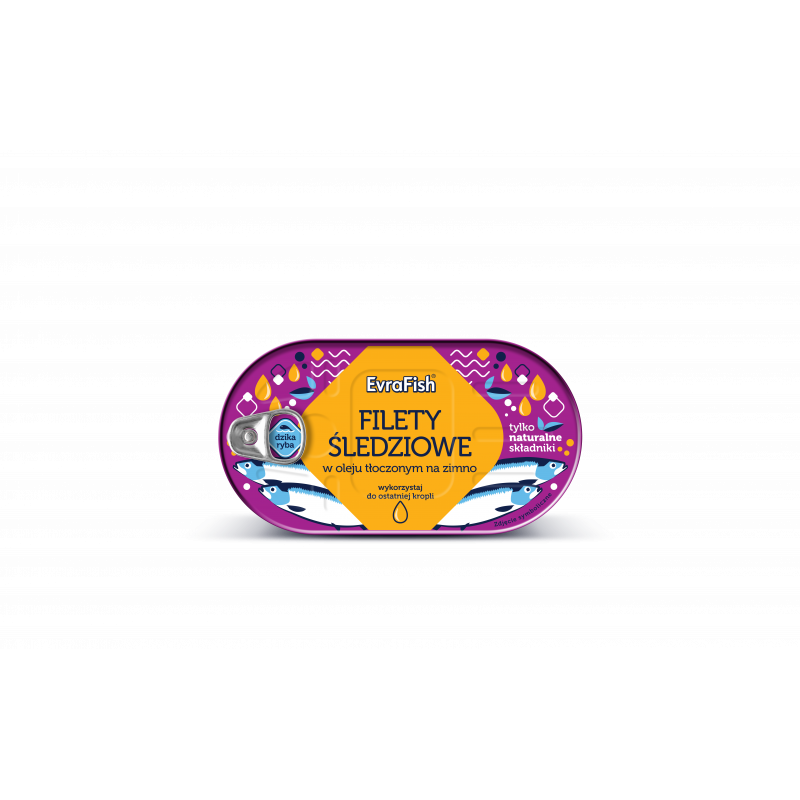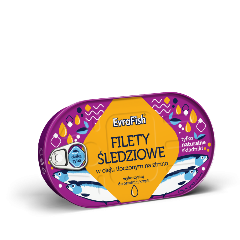 Filety śledziowe ze skórą w oleju rzepakowym tłoczonym na zimno.