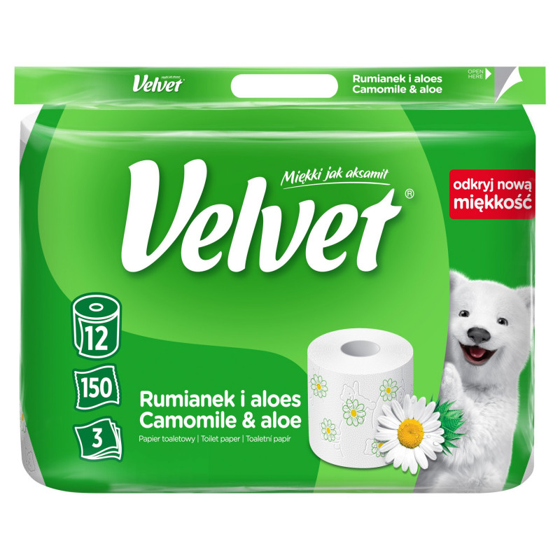 Data produkcji: na opakowaniu; Termin ważności: nieograniczony. Podziel się z nami swoją opinią: serwis.konsumenta@velvetcare.com Papier toaletowy zapachowy, 12 rolek, 3 warstwowy
