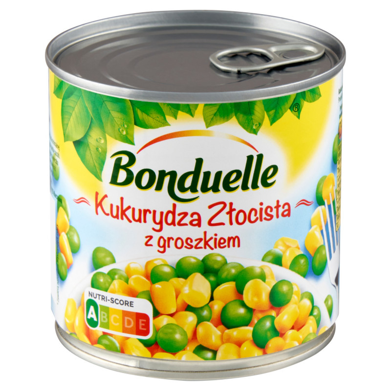 Kukurydza konserwowa z groszkiem. Produkt sterylizowany.